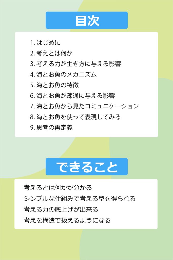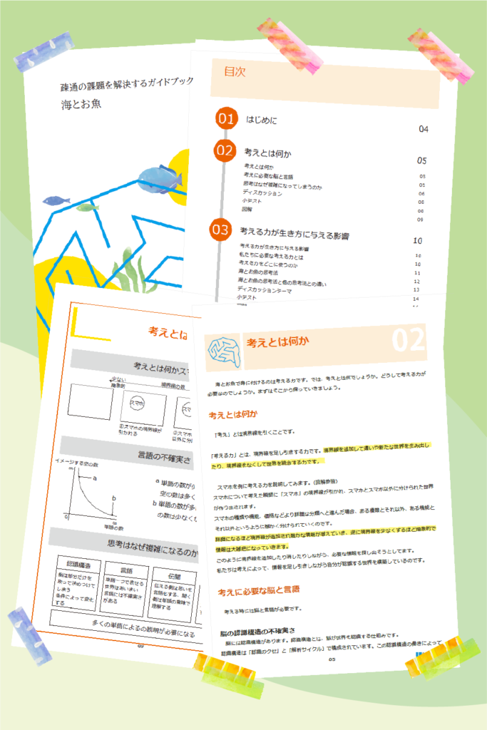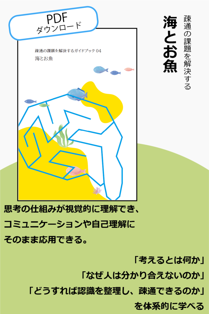 海とお魚のガイドブックは、「考えるとは何か」「なぜ人は分かり合えないのか」「どうすれば認識を整理し、疎通できるのか」を体系的に学べる内容になっています。